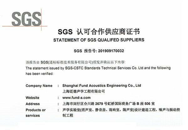 我司于8月通过SGS的审核,成为SGS认可的声学实验室(消声室/静音房/混响室/隔声室)合作供应商。
